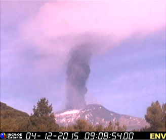 Figura 2: Un fotogramma dalle telecamere di sorveglianza dell’Osservatorio Etneo INGV di Catania che immortala la colonna eruttiva del 4 dicembre 2015