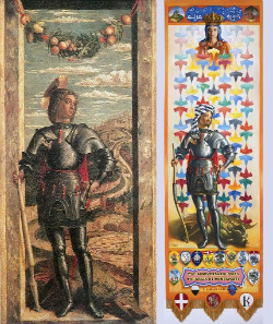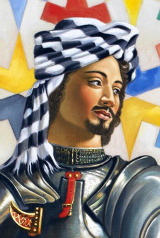 La 'genesi' dell'opera è invece rivelata dallo storico Giovanni Mazzini, autore di un saggio sull'esercito ghibellino di Siena alla battaglia vinta a Montaperti contro la guelfa Firenze: ''Dopo aver letto il mio lavoro, Hassoun mi ha cercato per selezionare meglio il dettaglio storico della presenza di saraceni nell'esercito di Siena contro le truppe guelfe di Firenze visto che ricorre il 750esimo anniversario e che il Palio lo ricorda''. Erano arcieri inviati dal re Manfredi di Sicilia, e Hassoun nel Palio ne ha raffigurato uno nell'atteggiamento del San Giorgio del Mantegna; ha tratti mediorientali, indossa una kefiah (e non l'elmo), viene colto dopo aver ucciso il demonio (per l'artista può rappresenatre il terrorismo), e non un drago come nella tradizione attribuita al santo. Una similitudine che ha convinto il movimento Giovine Italia a essere oggi a Siena ''per protestare contro questo Palio blasfemo''.