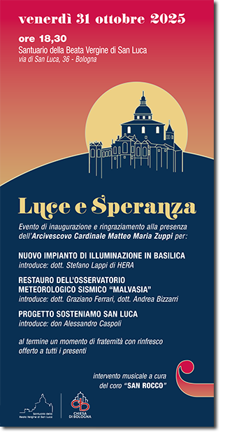 Il 31 ottobre alle 18.30, in occasione dell’evento “Luce e Speranza”, riapre al pubblico l’Osservatorio Meteorologico e Sismico Malvasia al Santuario della Beata Vergine di San Luca sul Colle della Guardia, uno dei più suggestivi di Bologna