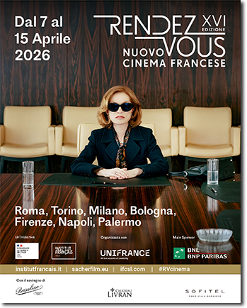 Dal 7 al 15 aprile 2026 torna RENDEZ-VOUS, un'iniziativa dell’Ambasciata di Francia in Italia/Institut français Italia, co-organizzata con Unifrance, dedicata al NUOVO CINEMA FRANCESE, appuntamento ormai centrale per il dialogo cinematografico tra i due paesi, imprescindibile per il pubblico amante del cinema d’Oltralpe. La kermesse racconta la settima arte francese contemporanea attraverso grandi autori, nuovi sguardi e interpreti di straordinario prestigio. Un “ponte culturale” sempre più solido, giunto quest’anno alla XVI edizione, con una selezione di titoli recenti, tra autori già affermati e nuove voci, star amate dal pubblico e giovani interpreti destinati a segnare il cinema dei prossimi anni. Oltre a Roma, con proiezioni al Cinema Nuovo Sacher e al Centre Saint-Louis, RENDEZ-VOUS è presente con sezioni speciali e ospiti in diverse città italiane: Cinema Classico a Torino, Anteo Palazzo del Cinema a Milano, Cinema Modernissimo a Bologna, Spazio Alfieri a Firenze, CasaCinema a Napoli e Rouge et Noir a Palermo.
