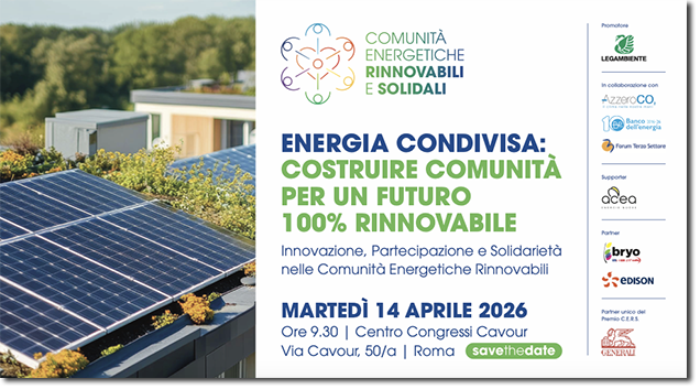 Non solo: il 14 aprile è anche l’occasione per premiare le Comunità Energetiche Rinnovabili e Solidali che hanno partecipato al bando promosso da Legambiente e Generali Italia. Il premio arrivato alla sua terza edizione nasce proprio con l’obiettivo di promuovere queste realtà, raccontare quanto accade nei territori e mettere in evidenza come queste configurazioni possono fare la differenza nei territori elaborando soluzioni in grado di contrastare la povertà energetica, le disuguaglianze e portare innovazione.