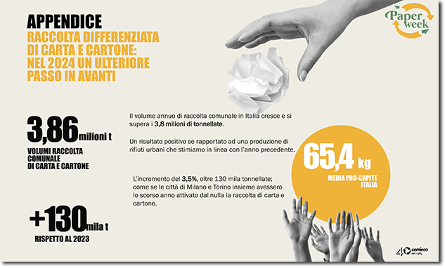 È iniziata la Paper Week, la settimana di sensibilizzazione e informazione sul riciclo di carta e cartone organizzata da Comieco, in collaborazione con Federazione Carta e Grafica e Unirima, con il patrocinio del Ministero dell'Ambiente e della Sicurezza Energetica, Anci e Utilitalia. Sono tante le iniziative che fino al 19 aprile animano città e regioni per descrivere il valore di una filiera in cui l’Italia è leader europeo, raccontare un’economia circolare che inizia nelle case dei cittadini attivando un processo industriale efficiente, capace di generare benefici concreti per ambiente, comunità e sistema produttivo.